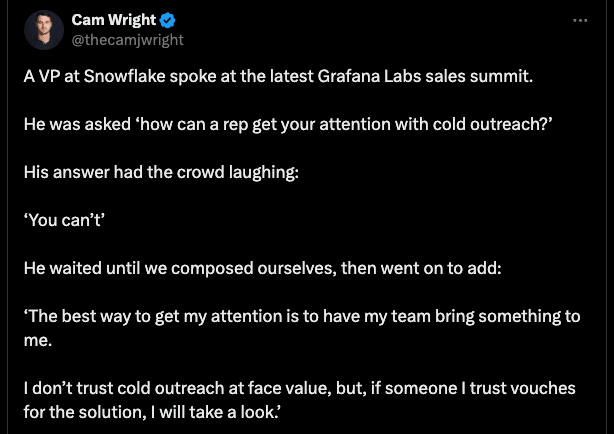 For many teams the next logical step is setting up an outbound cadence and launching air cover. Donât do it.