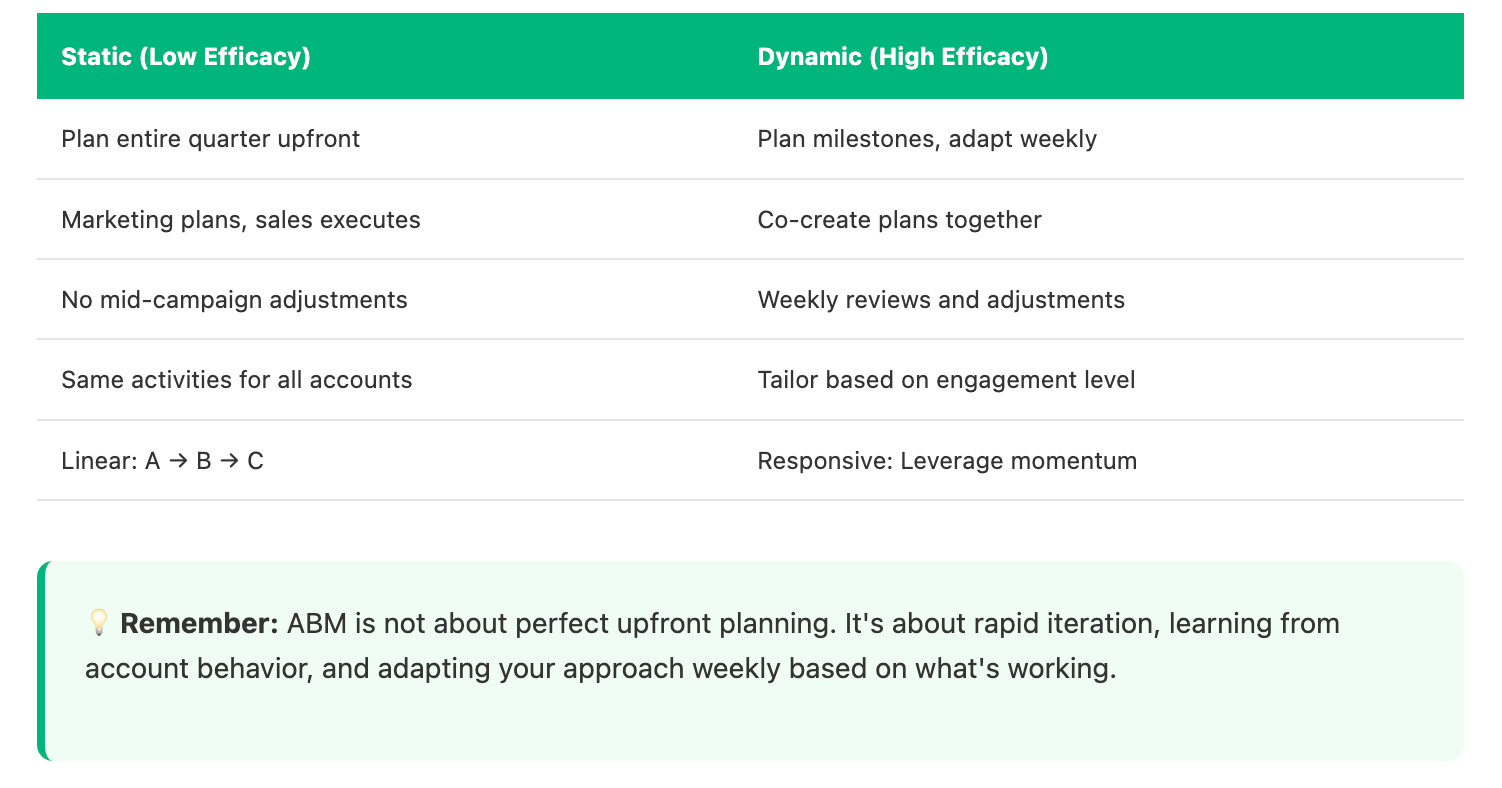 The biggest mistake we see with ABM is developing the static linear playbooks that should be executed according to the rigid deadlines: