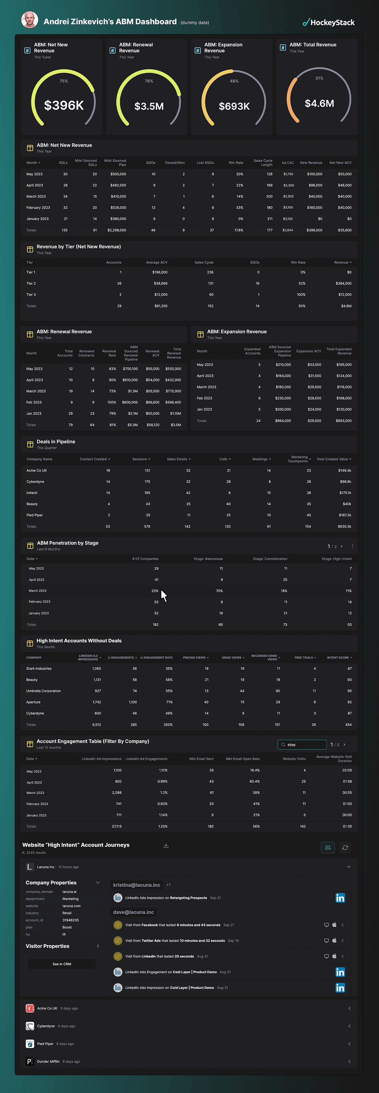 One of the biggest challenges with ABM is measuring and reporting on it. We partnered with HockeyStack to create an integrated ABM dashboard based on our reports.